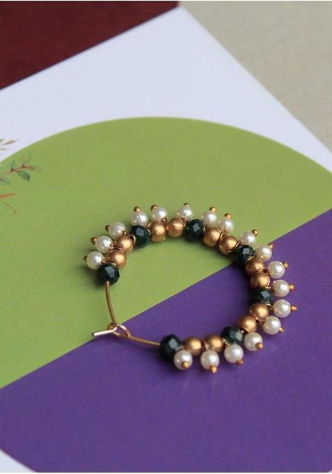 Lightweight and skin-friendly, the Brown And Blue Geometric Mixed Alloy Nath ensures comfortable wear throughout the day while maintaining an attractive designer look.