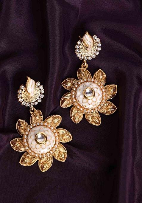 Plated Kundan Contemporary Drop Earrings