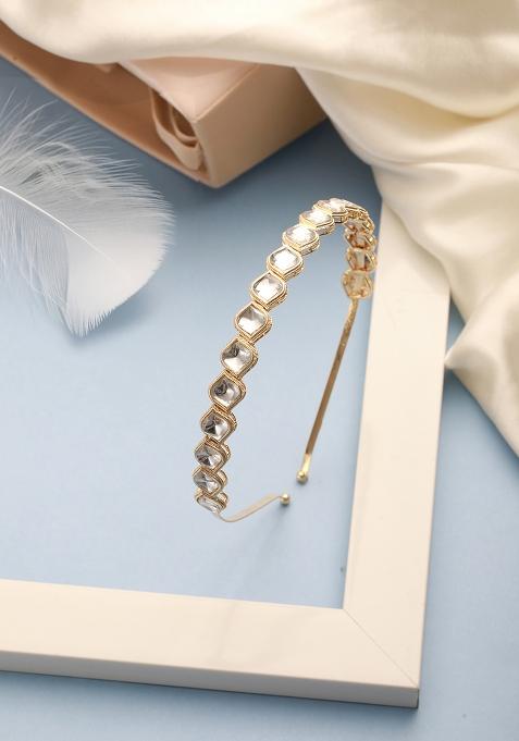 Lightweight and skin-friendly, the Kundan Studded Matha Patti Head Jewellery ensures comfortable wear throughout the day while maintaining an attractive designer look.