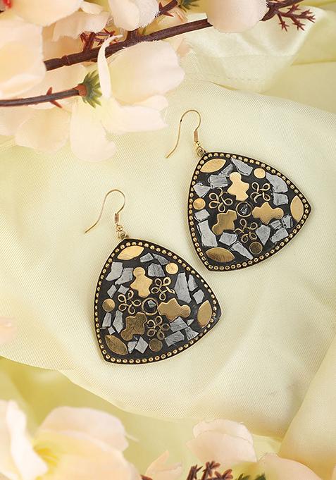 Lightweight and skin-friendly, the Grey Tribal Triangle Shaped Drop Earrings ensures comfortable wear throughout the day while maintaining an attractive designer look.