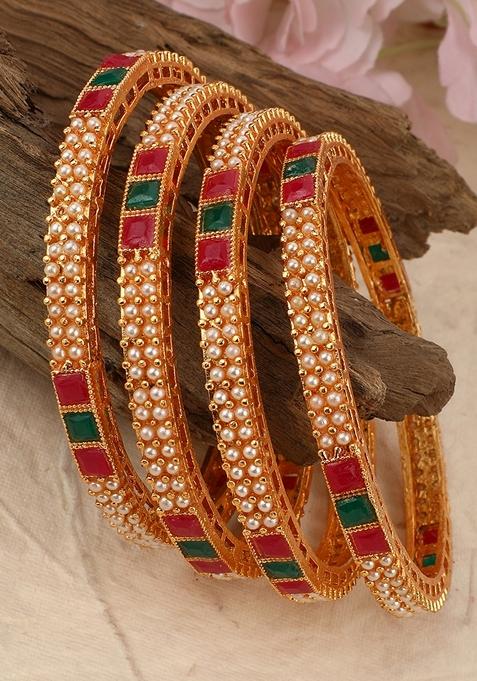 This Multicolor Pearl Set Of 4 Bangles is thoughtfully crafted to elevate your style effortlessly—perfect for adding charm and elegance to your ethnic wardrobe.