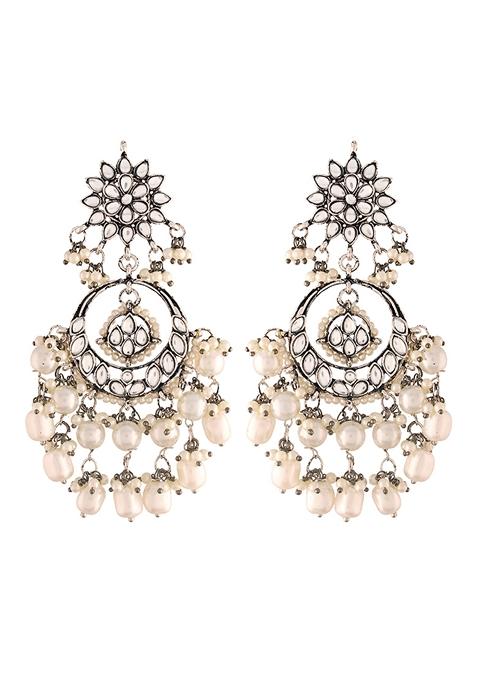 This Silver Oxidised Traditional Handcrafted Pearl Kundan Beaded Chandbali Earrings is thoughtfully crafted to elevate your style effortlessly—perfect for adding charm and elegance to your ethnic wardrobe.