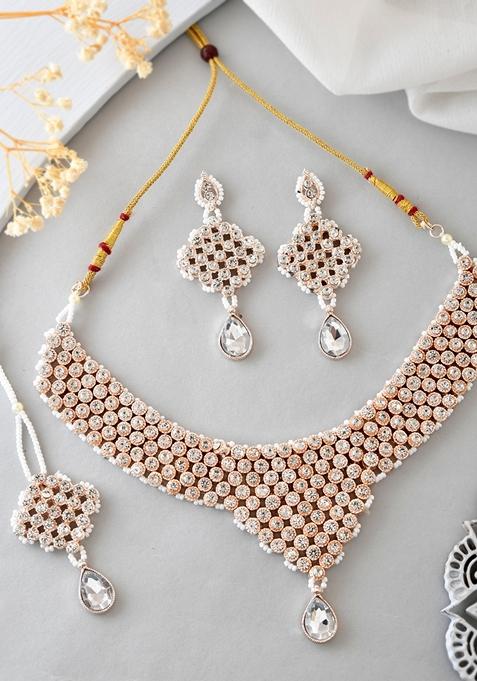 Silver Plated Party Wear Ad Choker Necklace Necklace Set
