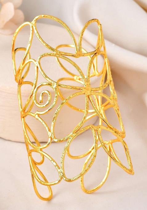 Discover the beauty of Indian artificial jewellery with our traditional Indian Statement Cutout Leaf Cuff Bracelet. Designed to give a rich and elegant look without the cost of real gold.