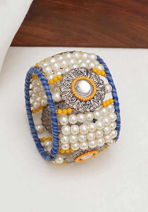 This Vintage Look Pearl And Beaded 2 Bangle is thoughtfully crafted to elevate your style effortlessly—perfect for adding charm and elegance to your ethnic wardrobe.